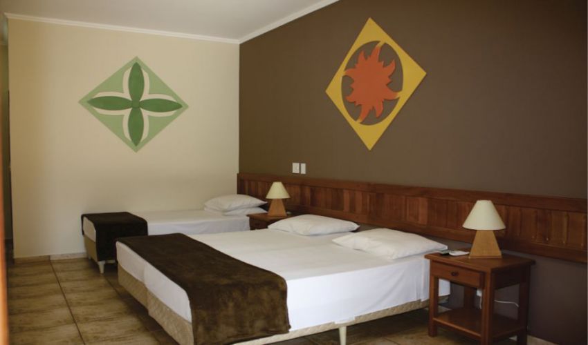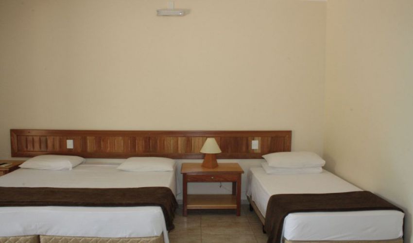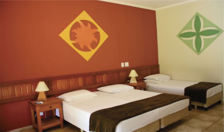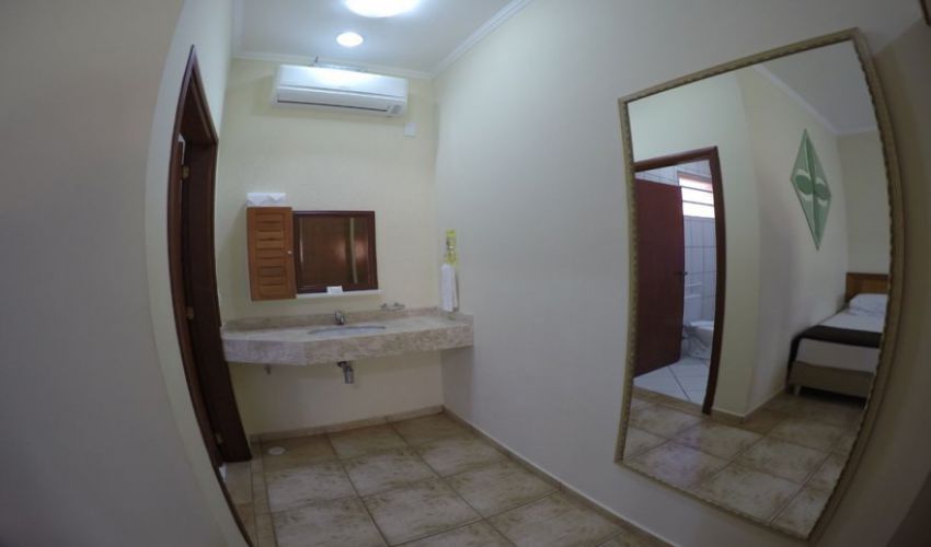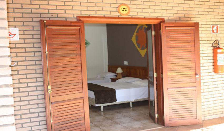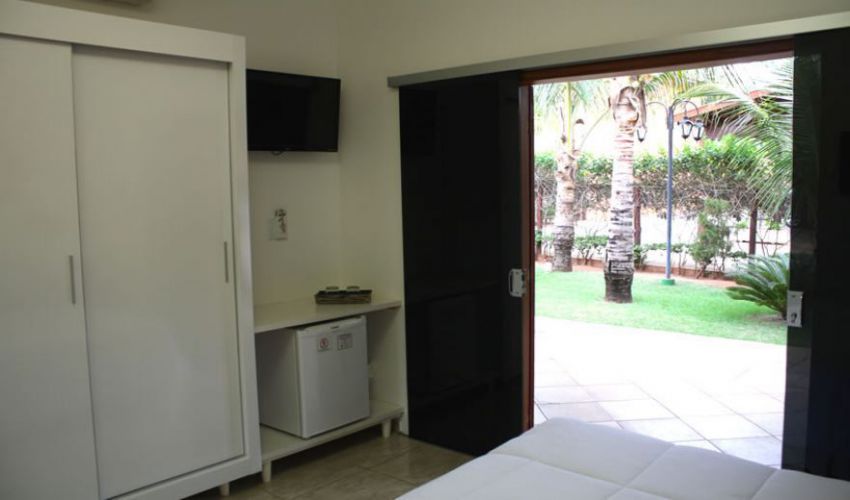 Todos os apartamentos são equipados com ar condicionado, TV 32", frigobar, cofre, varanda com rede e cadeira para descanso.
