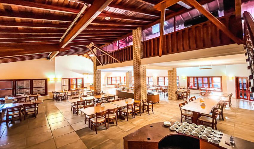 Restaurante climatizado, estacionamento privativo e coberto com uma vaga coberta para cada apartamento.